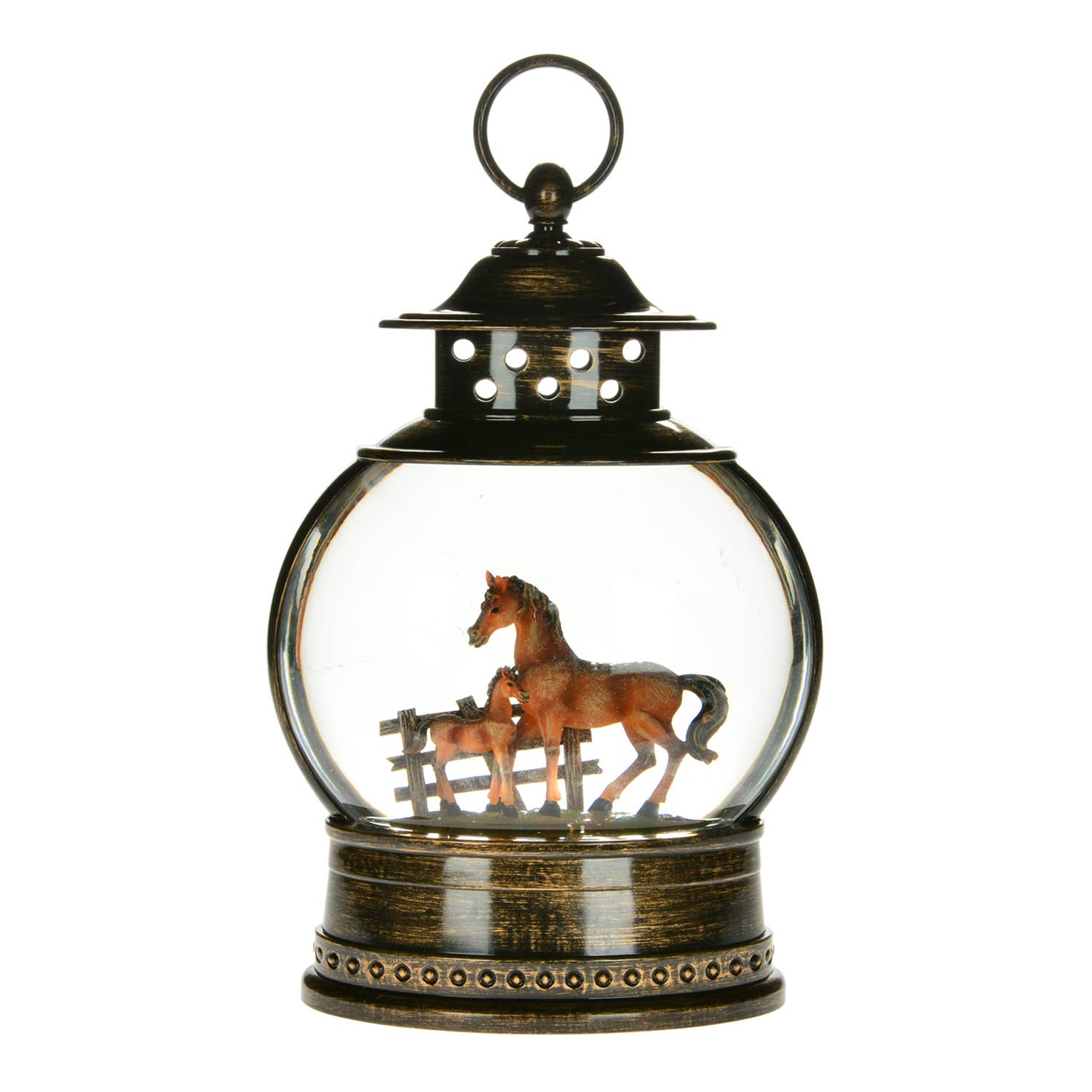 Our 10" Brown Lantern LED Snow Globe w/Horses, encapsulates the joy of the holiday season. The lantern features a charming snow globe with horses, bringing a magical, festive touch to any home. Its LED lighting creates a warm, inviting glow. Ideal for lovers of contemporary, classic, or country decor styles.