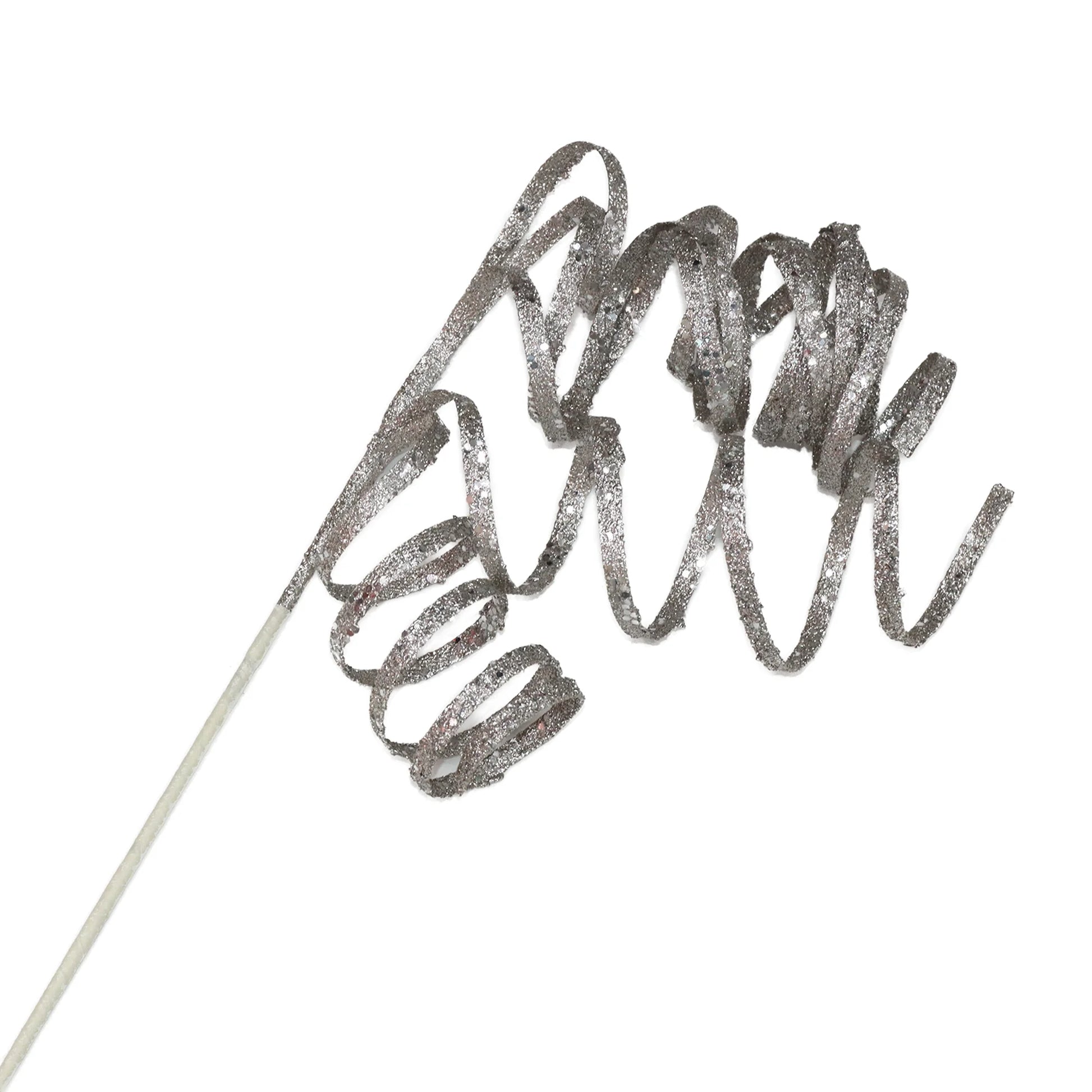 SPRAY HANGING CURL RIBBON PLATINUM 27.5" GLITTER